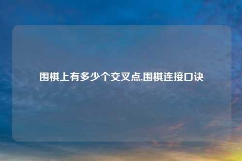 围棋上有多少个交叉点,围棋连接口诀