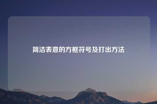 在我们日常的书写、排版以及各种信息呈现中,有一个看似平凡却又有着独特作用的元素——方框符号,它以简洁的形态,在不同的场景里发挥着多样的功能,承载着丰富的意义。