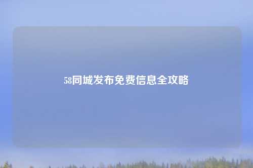 聚焦于58同城发布信息相关内容,重点是提供58同城发布信息的全攻略,并且着重探讨了免费发布信息的 ,对于有在58同城发布信息需求的用户来说,此攻略能帮助他们了解发布流程,掌握免费发布的技巧,无论是想出售二手物品、找工作、租房等场景,都能从中获取实用的操作指引,以更便捷、经济的方式在58同城上发布各类信息。