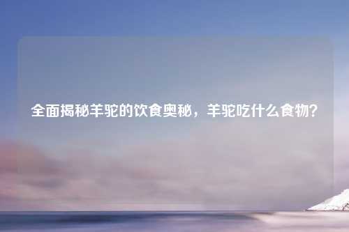 围绕“羊驼吃什么”展开,旨在全面揭秘羊驼的饮食奥秘,羊驼作为独特的动物,其食物来源一直备受关注,了解羊驼的饮食,不仅能满足大众的好奇心,还对羊驼的饲养管理至关重要,后续内容预计会详细介绍羊驼常吃的食物,为人们进一步认识羊驼的饮食习惯、确保其健康成长提供有价值的信息。