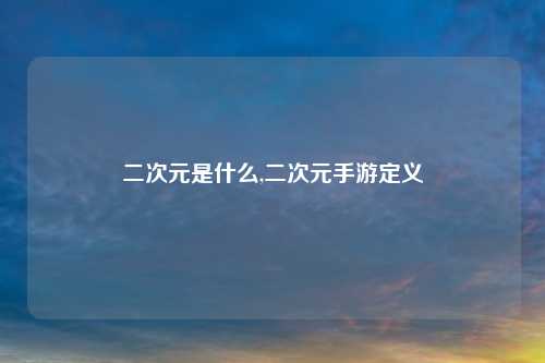 二次元是什么,二次元手游定义?
